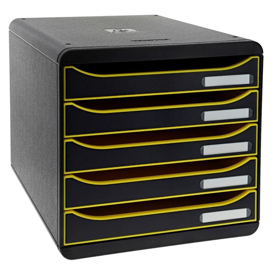 Caisson individuel noir à 5 tiroirs pour documents aux formats A4 et A4+, des pochettes plastiques 24x32 cm ou de grandes enveloppes. Design innovant et attrayant