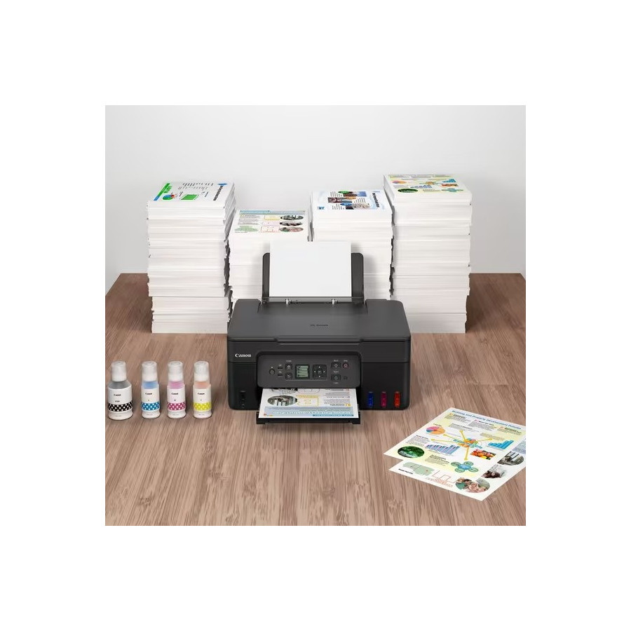 CANON PIXMA G3470 - Imprimante Multifonction ÉcoTank Wi-Fi/USB - Impression, Scan, Copie Le Canon PIXMA G3470 est une imprimante 3-en-1 compacte et économique, conçue pour imprimer, copier et scanner vos documents et photos avec une qualité exceptionnelle. Grâce à son système ÉcoTank à réservoirs rechargeables, elle permet d'imprimer jusqu'à 7700 pages avec des bidons d'encre GI-41, réduisant considérablement le coût par page. Connectez-la facilement via Wi-Fi ou USB pour une utilisation flexible depuis ordinateurs, smartphones et tablettes. Le Canon PIXMA G3470 allie performance, économie et polyvalence, idéal pour un usage domestique ou de bureau léger, tout en offrant un coût par page très faible grâce au système ÉcoTank.