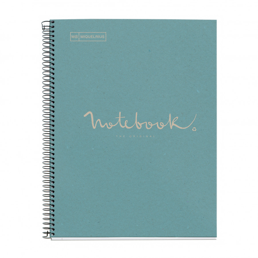 Notebook ECO EMOTIONS Miquelrius, format A4 (210 x 297 mm).Couverture : Carton 100% recyclé (récupéré post-consommation), compact et résistant.Spirale : Métallique continue qui permet l'ouverture à plat du cahier, ainsi que sa rotation complète, avec une fermeture COIL-LOCK qui évite les accrocs.Papier intérieur : 100% papier recyclé récupéré post-consommation ; opaque 80 g/m_, empêche l'encre de traverser et sèche rapidement. Feuilles : 80 feuilles avec une bande de couleur assortie à la couverture, idéales pour classer les notes et utiliser une couleur pour chaque matière ; en-tête pour les titres ; microperforées pour une séparation propre et 4 perforations pour le classement. Impression intérieure : quadrillage 5x5 mm.