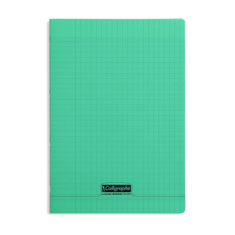 Le cahier piqué écologique Ligne 8000 format A4 (21x29.7cm) grands carreaux (seyes) est fabriqué en France par CLAIREFONTAINE pour sa marque de cahiers écologiques Calligraphe.